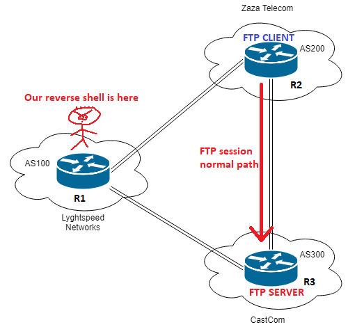 The diagram_for_tac.png file contains a network diagram showing 3 different BGP autonomous systems (the initial foothold is in AS100).