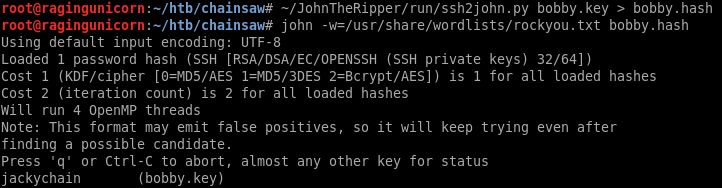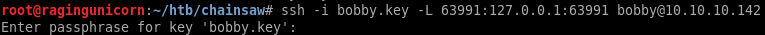 root@ragingunicorn:~/htb/chainsaw# ssh -i bobby.key bobby@10.10.10.142