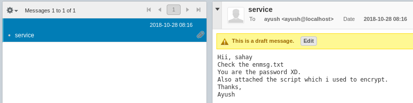 There’s a message in the Drafts folder containing an encrypted message: