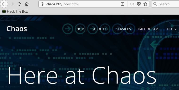 - The main chaos.htb page is just a generic corporate webpage with nothing else interesting on it:
