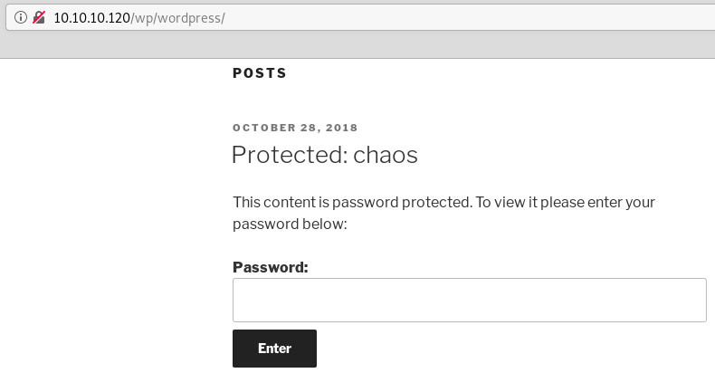 Chaos starts with some enumeration to find a hidden wordpress site that contains a set of credentials for a webmail site. There’s some simple crypto we have to do to decrypt an attachment and find a hidden link on the site. We then exploit the PDF creation website which uses LaTeX and gain RCE. After getting a reverses shell, we do some digging into the user’s folders and find the webmin root credentials stored in the Firefox user profile.