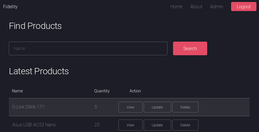 With the header set, I’m able to access the admin portion of the website where I can search for products and update the inventory.