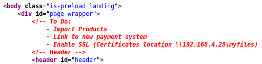 On the main HTML page source code there’s some kind of hint about a new payment system and an IP address. The IP address seems pretty interesting since we could use this in a HTTP header such as X-Forwarded-For to indicate to a backend server the source of the HTTP connection.