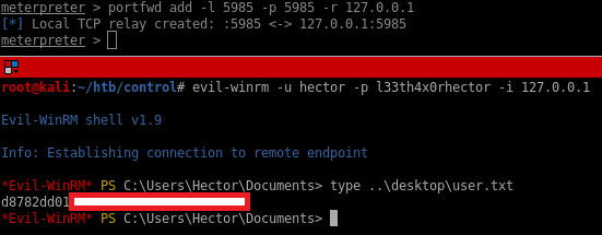 There’s two easy ways to get a shell as Hector using the credentials found in the database: