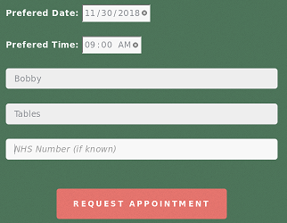 The booking page also doesn’t work for us because we don’t have a valid patient name to book an appointment.