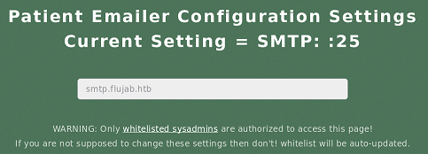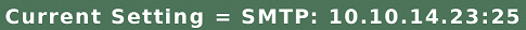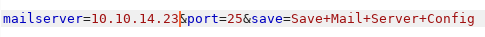 Configure=Null, and that we can change it to aTrue - Use the SMTP administration panel to set the SMTP server IP to our own IP address