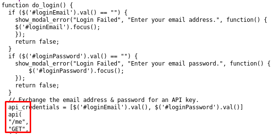 The api call shown above is missing the closing parantheses, plus other functions are missing such as shown_modal_error(). This whole code is basically useless. I tried fuzzing the site to find a hidden API endpoint but didn’t find any.