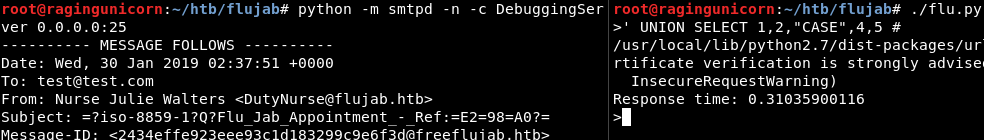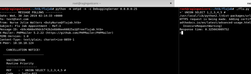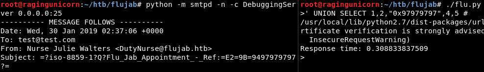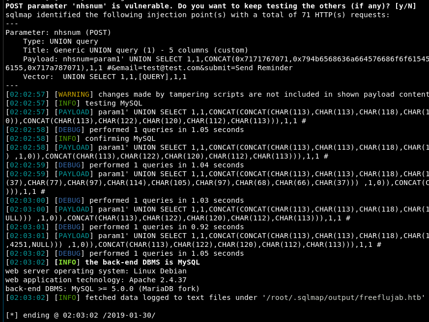 ?remind,?cancel, and?bookpages send an email which we can receive by running a local SMTP server on our machine - The webpage code contains a Boolean Blind SQL injection and a Union based SQL injection, both of which can be exploited through the email responses