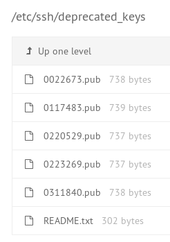 However after looking for a bit, I found the /etc/ssh/deprecated_keys directory that contains the following files: