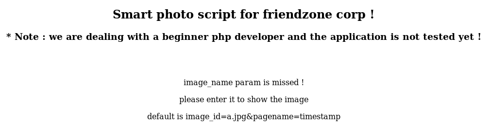 echo "<center><p>default is image_id=a.jpg&pagename=timestamp</p></center>";