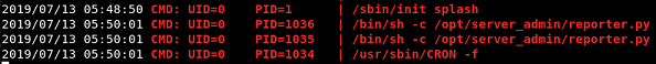 /opt/server_admin contains a reporter.py script that probably runs every minutes in a root owned cronjob: