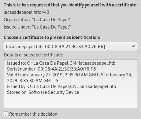 | ssl-cert: Subject: commonName=lacasadepapel.htb/organizationName=La Casa De Papel
