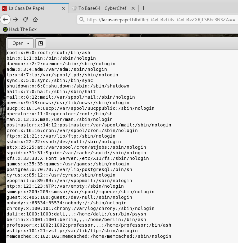 Ok, nice I can now read /etc/passwd. Let’s try reading the user.txt flag in berlin’s home directory