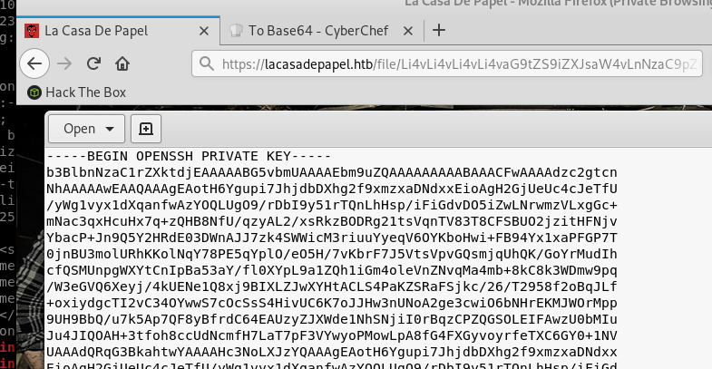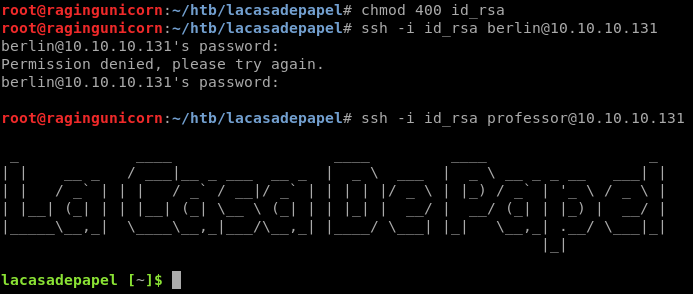 After getting the key I tried using it with the obvious suspect, user berlin but it didn’t work. However I was able to log in to user professor: