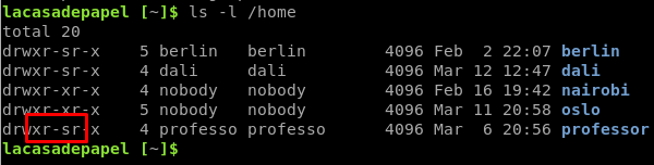 Professor’s home directory has interesting permissions, it has the SGID bit set.