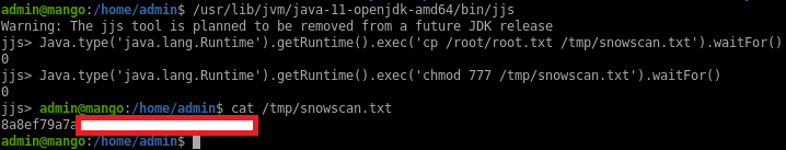 mangothen su toadmin - The jjs java utility is installed and is SUID root so we can execute anything as root