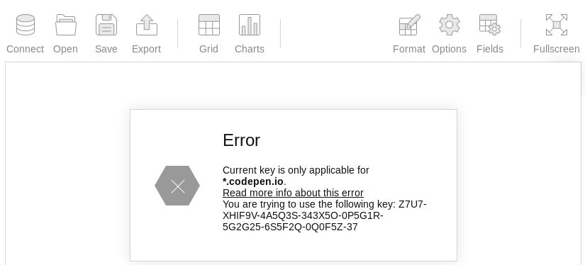 There’s an analytics page that shows some kind of javascript application and there’s an error message about an invalid license.