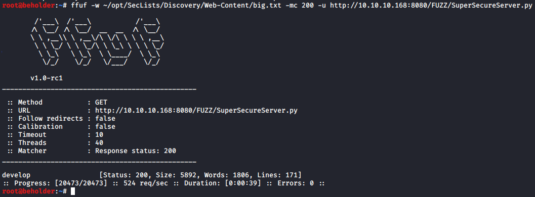 The server source code is located here: http://10.10.10.168:8080/develop/SuperSecureServer.py