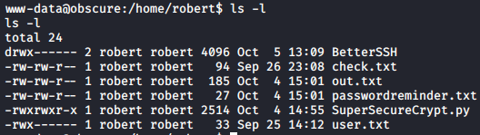 www-data@obscure:/home/robert$ cat check.txt