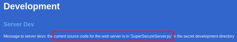 Looks like these guys haven’t discovered email yet and they use their public website to message their developpers instead. I’m now going to be looking for that directory that holds the SuperSecureServer.py file next.