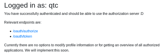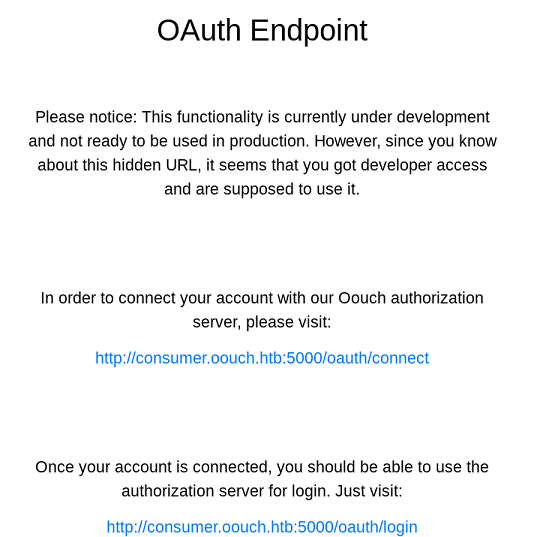 There’s a /oauth/applications directory but even with the credentials above we can’t get passed the HTTP basic authentication.