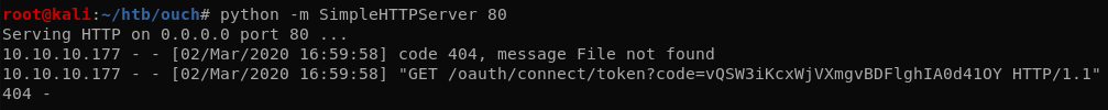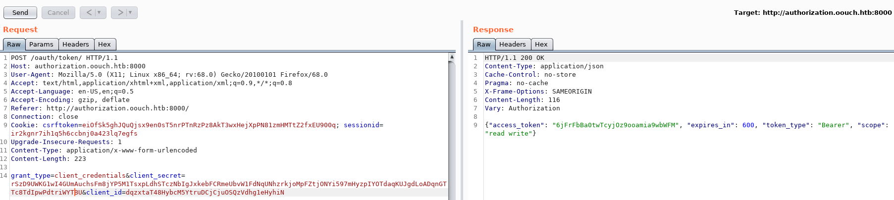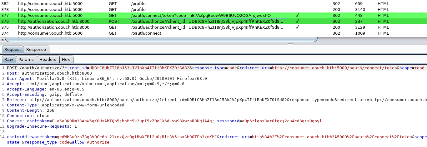 Ooauth was a pretty tough box because I was unfamiliar with Oauth and it took a while to figure out the bits and pieces to chain together. The priv esc was pretty cool, we had to talk to the uwsgi socket directly to manipulate the REMOTE_ADDR variable and exploit a command injection vulnerability in the script calling iptables.