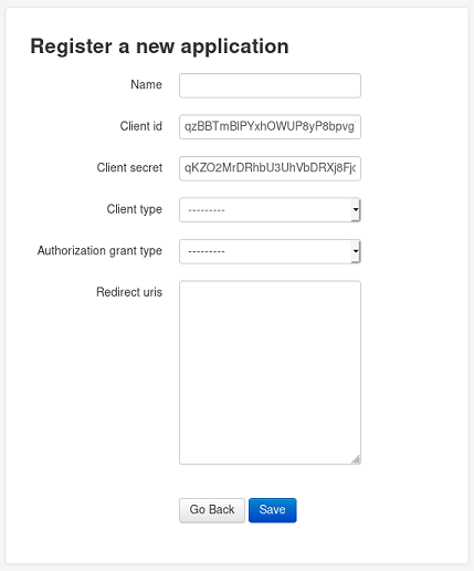 To get a token for the API endpoints, we’ll first register a new application with Client credentials as the Authorization grant type.