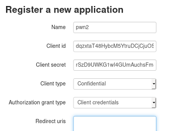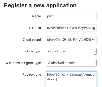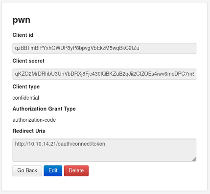 Now that we can add applications, we can exploit the redirect_uri and use the XSS again to steal the administrator’s sessionid cookie.