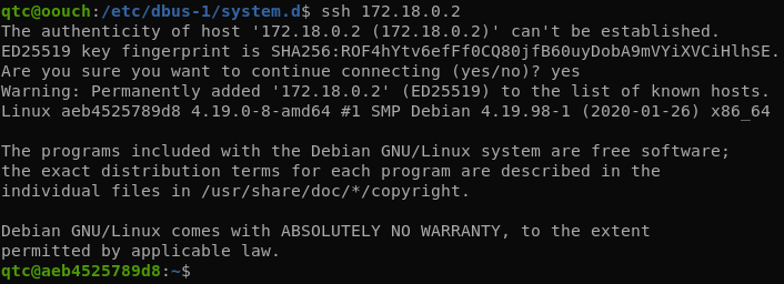 There’s a dbus configuration that accept messages from the www-data user. This is probably used to pass messages between the container and the host containing the IPs to be blocked by iptables. This a command injection vector if we can control the IP address sent to the iptables command.