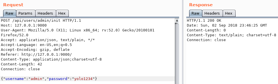 POST to /api/users/admin/init with json [password: myotherpassword] without Authorization header