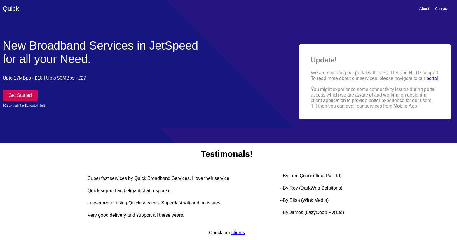<p>Quick Broadband services established in 2012 by Jane.</p>