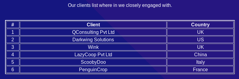I went back to the Testimonials and client information we found earlier and tried different combination of domain names and TLDs. The country indicated in the client list is a hint that allows us to guess the TLD instead of fuzzing all possible TLDs.