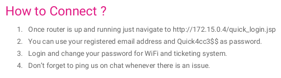 The Connectivity.pdf file has the default password assigned to customers: Quick4cc3$$. This is probably the password used on the ticketing system but we don’t have the username to log in.