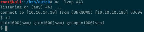connect to [10.10.14.10] from (UNKNOWN) [10.10.10.186] 58348