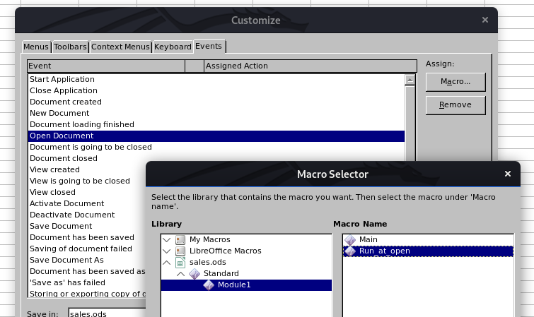 - Craft a malicious .ods file with a macro that downloads and executes netcat when the document is opened