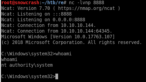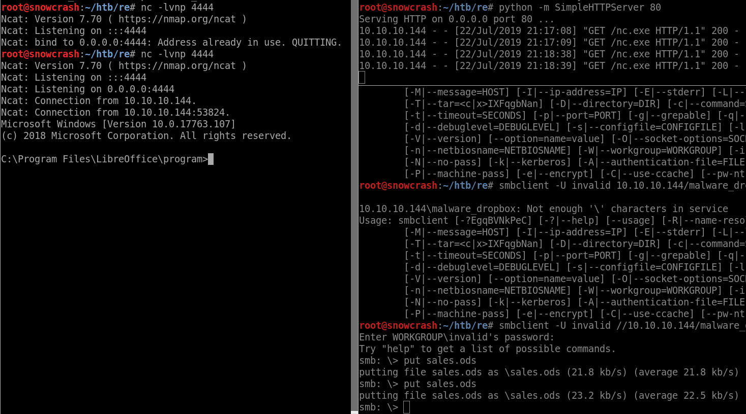 [+] IP: 10.10.10.144:445 Name: re.htb