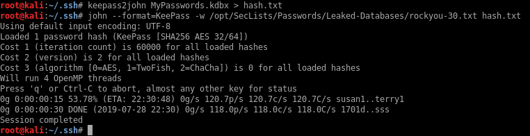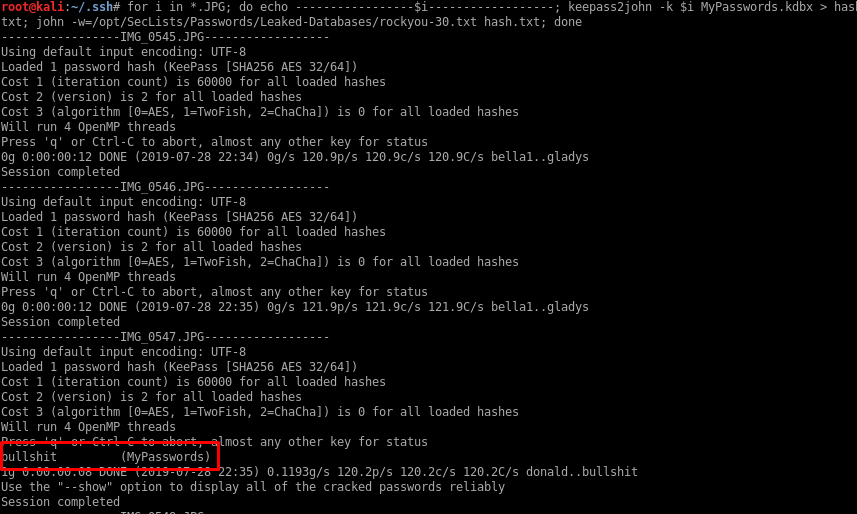 - I can crack the password for the KeePass vault (one of the image file is the keyfile) which contains the root password