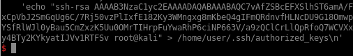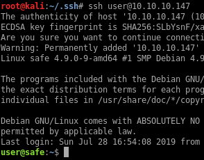 Because the SSH service is listening, I can dump my SSH public key in /home/user/.ssh/authorized_keys: