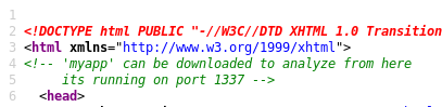 I’ll go back to the webpage and look for clues in the HTML comments. It’s not realistic at all but I find a link to the binary in the comments: