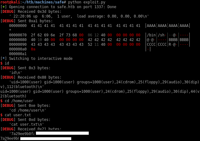 Safe was a bit of a surprise because I didn’t expect a 20 points box to start with a buffer overflow requiring ropchains. The exploit is pretty straightforward since I have the memory address of the system function and I can call it to execute a shell. The privesc was a breeze: there’s a keepass file with a bunch of images in a directory. I simply loop through all the images until I find the right keyfile that I can use with John the Ripper to crack the password and recover the root password from the keepass file.