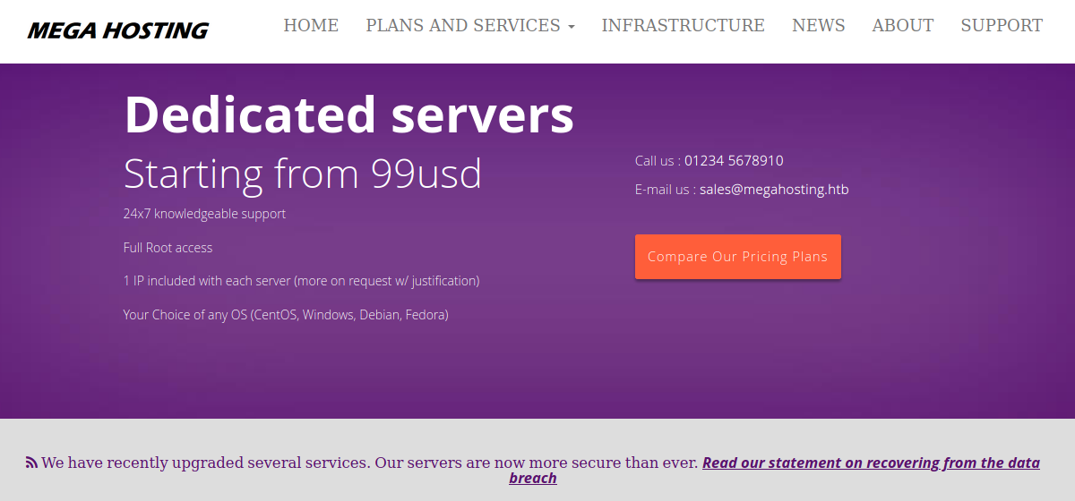 On the main website there’s a link to a statement about some previous security breach: http://megahosting.htb/news.php?file=statement
