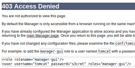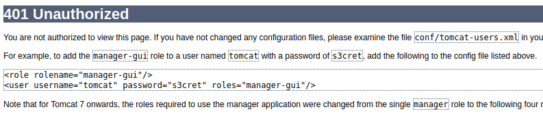 There’s a default Tomcat installation on port 8080 but the password for the manager page has been changed and we can’t log in.
