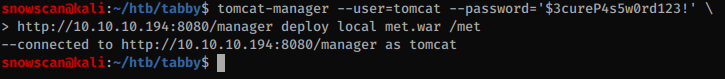 To deploy the WAR file payload I’ll use https://pypi.org/project/tomcatmanager/