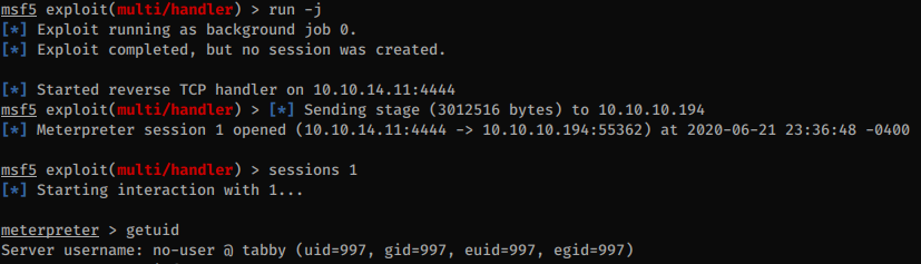 Browsing to http://10.10.10.194:8080/met/vjreafuiffq.jsp I can trigger the meterpreter shell: