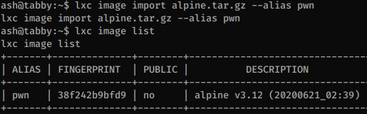 I’ll upload an small Alpine Linux image, import it, then launch a new instance as privileged then I can read the flag from the host OS.