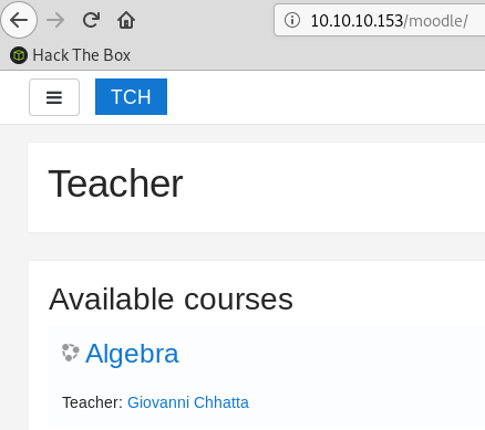 We can now log in to the Moodle webpage with giovanni / Th4C00lTheacha#: