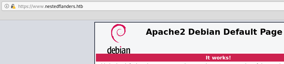There’s not much running on this box but I make note of the www.nestedflanders.htb SSL certificate name. I’ll add this to my /etc/hosts file as well as other subdomains like admin.*, dev.*, etc. in case I need them later.