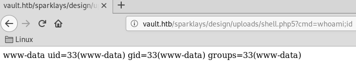 http://vault.htb/sparklays/design/uploads/shell.php5?cmd=ls%20-l%20/home/dave/Desktop