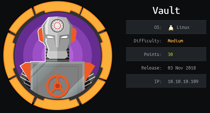 # Nmap 7.70 scan initiated Sat Nov 3 23:09:53 2018 as: nmap -F -sC -sV -oA vault 10.10.10.109